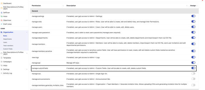 To manage custom fields, ensure that the required permission is enabled for your role.