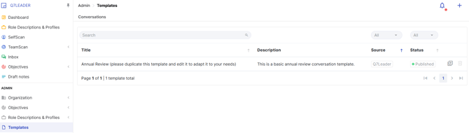 Note that any Q7Leader template containing objectives fields will require an additional setup step by your HR team after duplication.