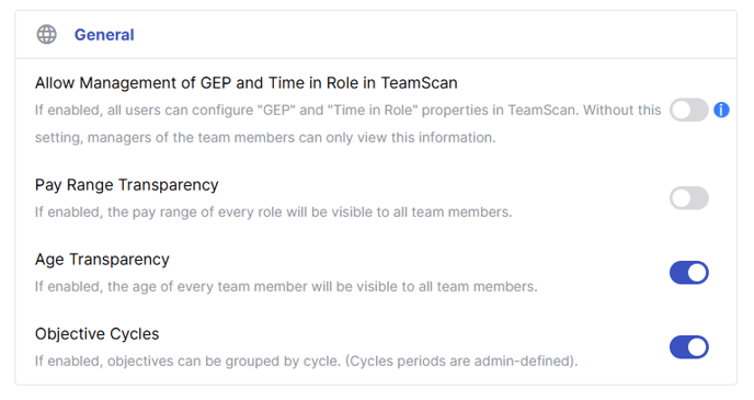 Purpose: Controls whether the age of each team member is visible to anyone that has access to them (manager/head of dept/admins).