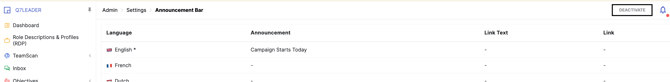 Enter your announcement text: you can create the message in all available languages to ensure every user sees it in their preferred language. In case a language is left empty, the version shown when the platform is set in that language will be the English one.
