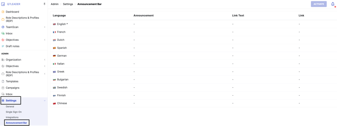 - Click Activate to make the announcement visible