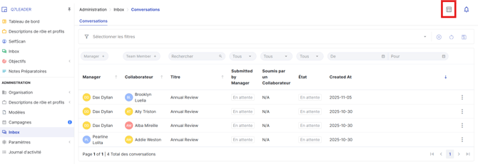 En attente : la conversation est toujours en attente de soumission, soit par le Manager, soit par le Collaborateur, ou par les deux.
