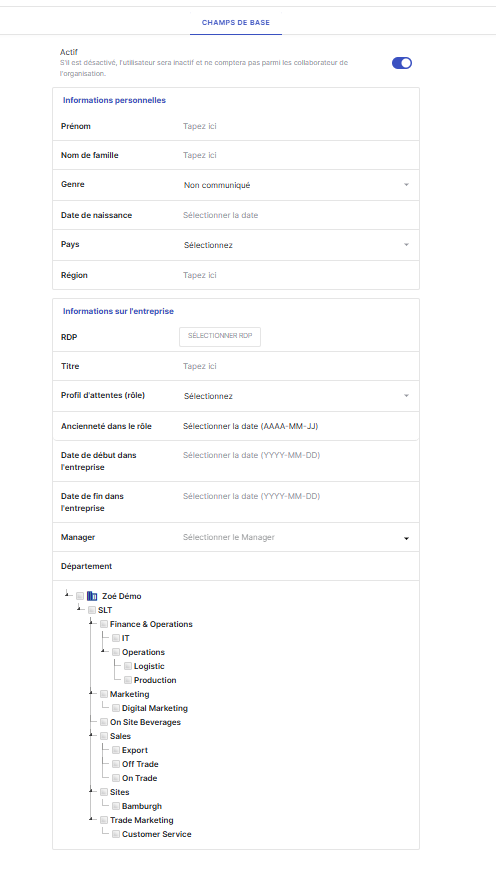 Assignez un manager et sélectionnez le département correspondant. - Enregistrer