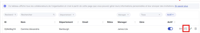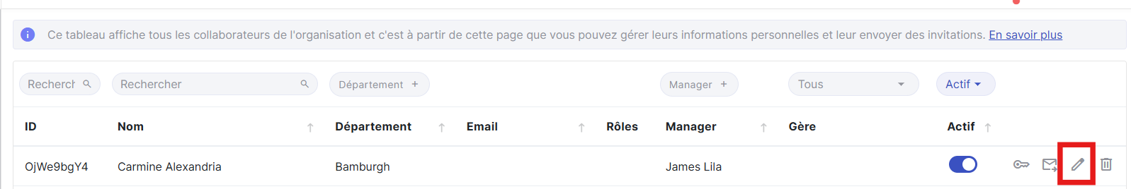 Recherchez-le par nom ou filtrez par manager. - Mettre à jour les informations