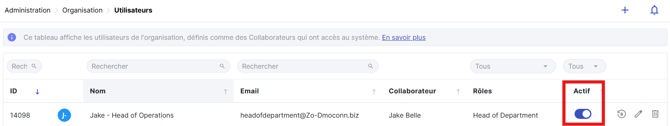 • Désactivez le statut Actif pour désactiver le collaborateur.