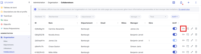 De là, recherchez le nom du collaborateur et cliquez sur l’icône en forme de clé située à droite de son nom pour accéder à ses paramètres d’autorisations.