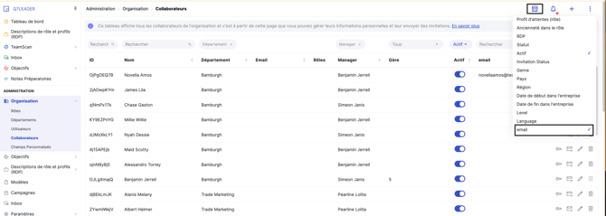 • Activez la colonne Email