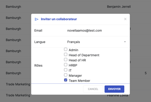 • Sélectionnez le rôle correspondant à ses responsabilités (ex. : Manager)