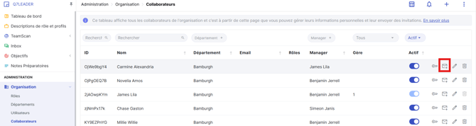 Repérez le membre de l’équipe que vous souhaitez inviter, puis cliquez sur l’icône en forme de lettre à droite de sa ligne.