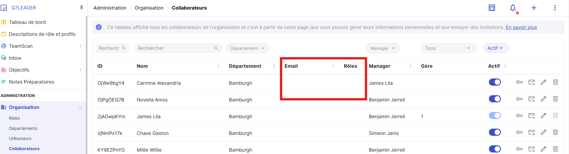 Vérifiez qu’aucun utilisateur n’est associé à ce collaborateur (assurez-vous que les colonnes E-mail et Rôle sont vides).