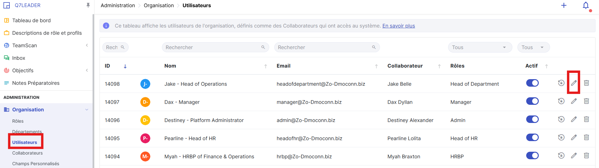 Allez dans Admin > Organisation > Utilisateurs.