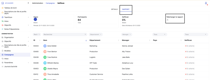 Depuis cette page, vous pouvez également télécharger un rapport en cliquant sur « Télécharger le rapport ».