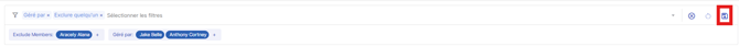 Étape 3 (OPTIONNELLE) : Appliquer le filtre « Exclure quelqu’un » et sélectionner des noms issus de recherches précédentes pour les exclure, uniquement si un manager reporte à un autre dans la même session.