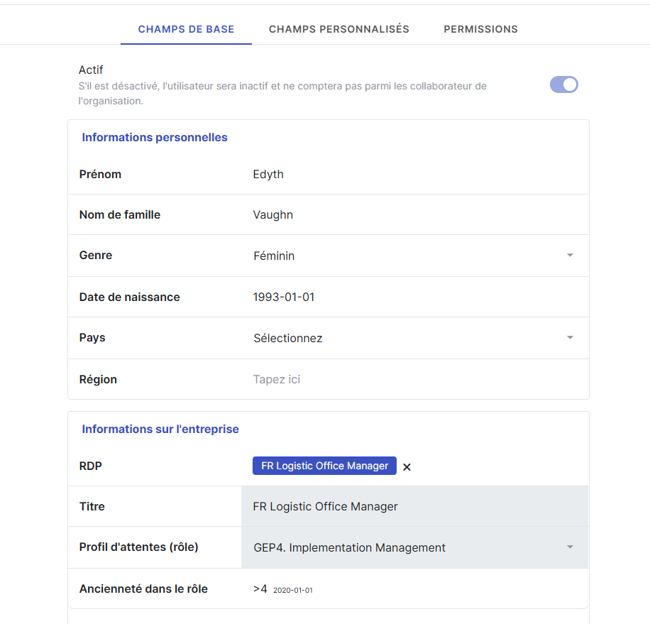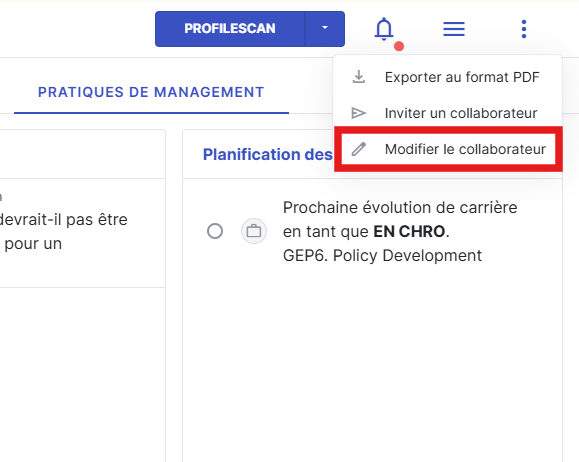 Vous serez redirigé vers le profil du membre de l’équipe, où vous pourrez mettre à jour son GEP.