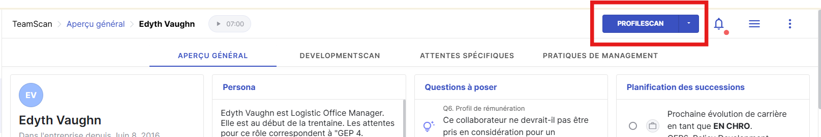 Lorsque vous menez une campagne TeamScan et que vous constatez que le GEP attribué dans TeamScan est incorrect, les utilisateurs RH ou Admin peuvent mettre à jour le GEP. Une fois la modification effectuée, vous devrez créer un nouveau TeamScan afin d’appliquer le GEP mis à jour. Le GEP ne sera mis à jour que via ce nouveau TeamScan.