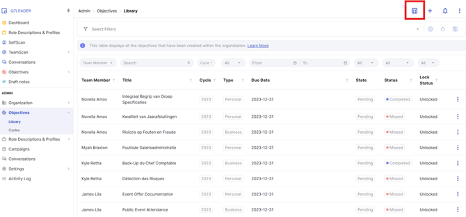 Go the Admin section and Objectives Module, and « Library » section to manage the objectives.