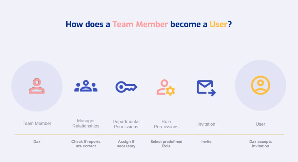 • HRBP : Accès étendu aux modules RH (ex : RDP, Team Scan, Planification de succession). Peut consulter et soutenir les activités de développement organisationnel, généralement sur plusieurs équipes ou départements, sans disposer d’un accès administrateur complet.