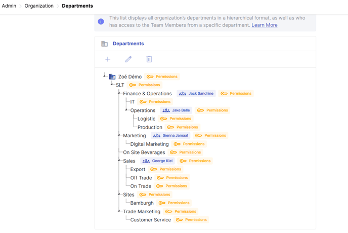 To review the permissions you've assigned, click the "Permissions" icon next to the department name.