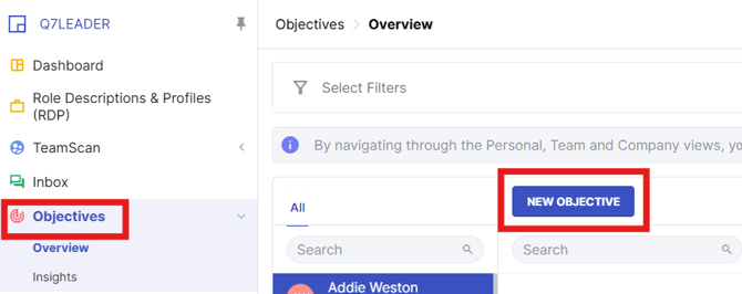 Directly in the Objectives module by clicking NEW OBJECTIVE