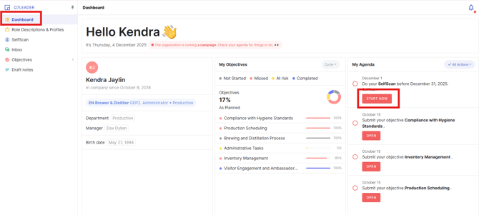 - Navigate to your Dashboard and open the “SelfScan" Task by clicking "Start Now".